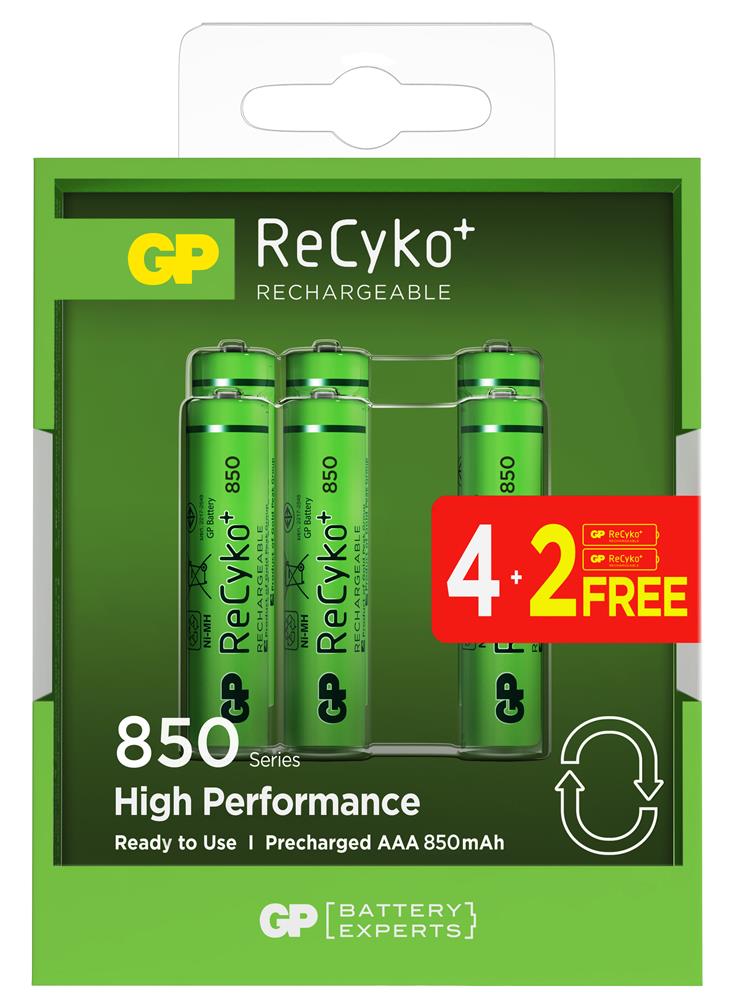 Gp AAA 850 mAh Şarjlı İnce Kalem Pil 4+2’li Paket Recyko GPHCH83BOK